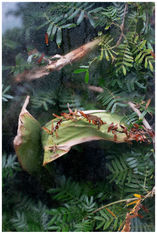 Ce que l'on perçoit à travers la verrière, c'est tout un jeu de transparences, de dentelles végétales venues d'un autre monde, blotties les unes contre les autres dans de vaporeux tons verts et ocres. Certaines plantes plaquées contre les vitres semblent en quête de lumière pendant que d'autres dans de somptueux flous s’estompent délicatement dans la sombre moiteur de la serre. De larges feuillages se fanent et se fripent, que j'aime suivre dans leur lente et délicate marcescence. De temps à autre, quelques précieuses floraisons viennent joyeusement ajouter la touche colorée manquante. Atmosphère mystérieuse et féérique qui m'a toujours donné matière à rêver.